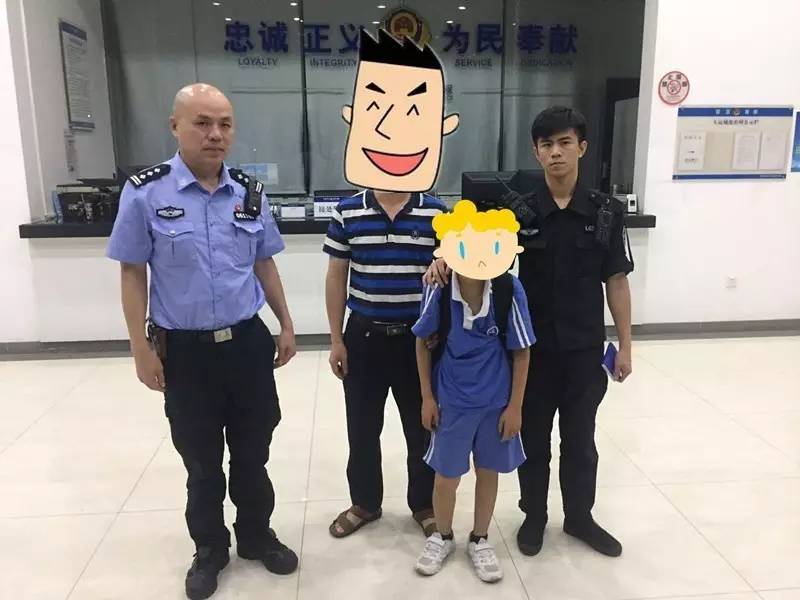2017年5月26日凌晨,龙岗公安分局大运城派出所民警巡逻至龙翔大道时,发现一名推着自行车的儿童,看起来神情疲惫,民警试图与其沟通,但孩子不愿配合,民警只能将其带回安置。随后民警在孩子书包内发现疑似孩子父母的姓名,随即在全国人口查询系统内进行筛查,几小时后,终于找到其父母的联系方式,并通知孩子的父亲蔡某前来认领。蔡某赶到派出所后看到毫发无损的孩子对民警十分感谢,并告知民警孩子是与家人吵架赌气离家出走的。在了解情况后,民警提醒家长:教育孩子要注意方式,适当引导。