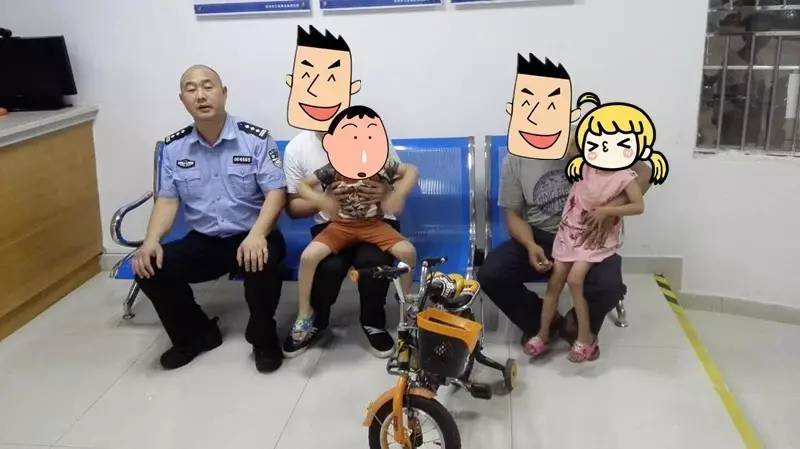 2017年5月30日晚,龙岗公安分局龙岗派出所民警在巡逻至华西街时,发现两名儿童(男孩约3岁,女孩约4岁)骑着一部小单车在马路上哭,周边无大人陪伴,加之路面车流比较多,情况危险。民警立即将孩子带到安全地带,并询问孩子的详细情况,但两名儿童年纪太小,无法清楚表达,民警只能将孩子带回,并通知路面警力走访调查。所幸在同一时间,同乐派出所接报一宗两名儿童走失的警情。民警快速联系报警人,仔细核查信息后,将孩子送回父母身边。经了解,两名儿童是自己出门玩耍走失。