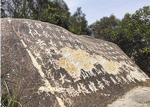 大鹏东山寺龙头山顶的“龙头石”被刻“打油诗”。
