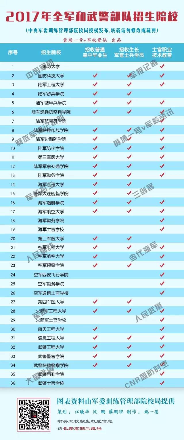 根据军队招生工作计划,经军委机关招生主管部门授权,“黄埔一号v军校资讯”(ID:hp1hjxzz)联合多家网络平台发布“2017年军队院校招生单位名录”。