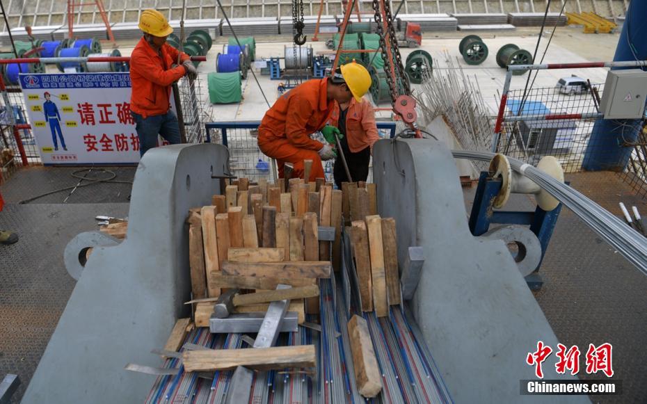 工人师傅正在对大桥钢索进行固定。刘忠俊 摄