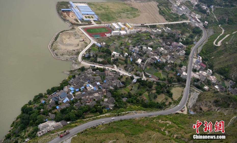 站在离大渡河河面200多米高空上俯瞰国道318公路和村庄。刘忠俊 摄