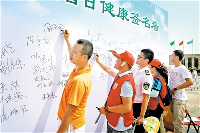 图为开展拒烟签名活动。