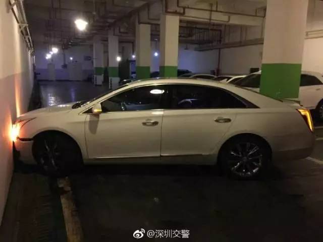 南山香谢峰景苑停车场,一位司机的车子与墙来了个亲密接触!现场民警反馈:司机操作不当,直接撞墙了。