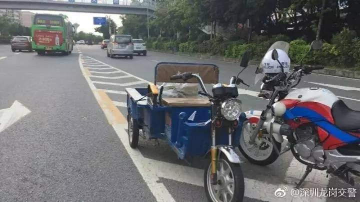 6月4日,布吉交警蜀黍在处理完事故现场回程中发现,两快递三轮车在快速路布龙路银龙加油站段逆向行驶,便立即将其拦停,铁骑蜀黍依法对其作出处罚并教育当事三轮车驾驶员。