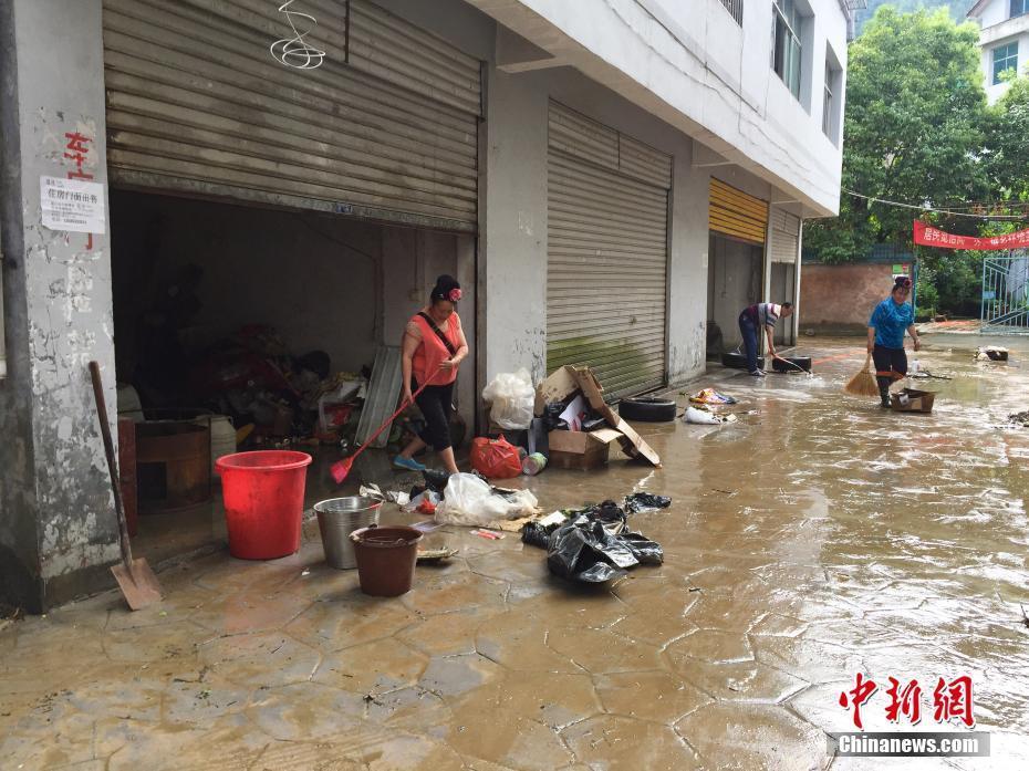 雷山县城民众在清扫淤泥。