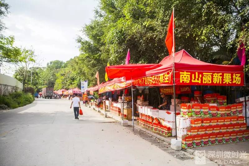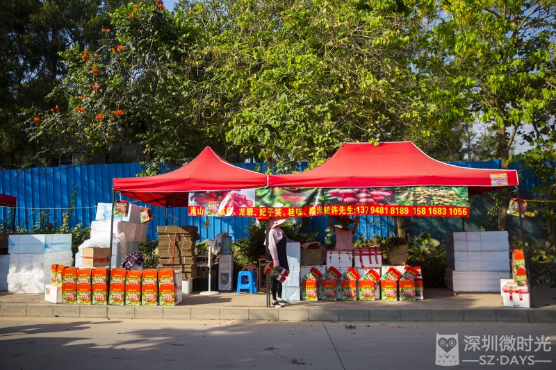 从五月底荔枝成熟开始,这条街就撑起火红的遮阳篷,把最好吃的南山荔枝卖到深圳各区甚至全国各地,一直持续到七月底或八月初荔枝结束季。