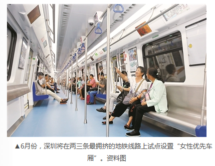 深圳将试点设置地铁“女性优先车厢”