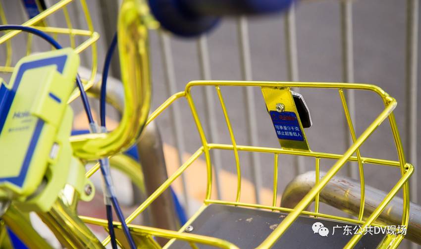 车篮筐也采用金色设计,为了提示使用者不要把小孩放在车篮里,在此单车也做出了温馨提示。