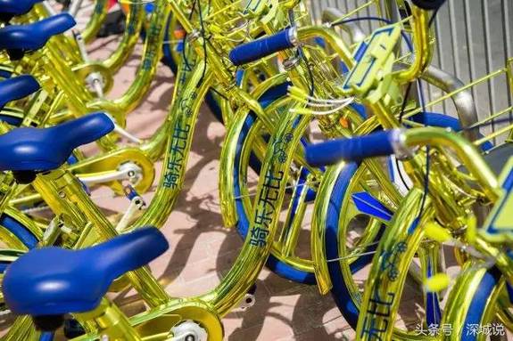 在深圳市福田区上梅林地铁站外,一批金光闪闪的共享单车出现在此。阳光照耀在金色的车身上,真的“亮瞎眼”。