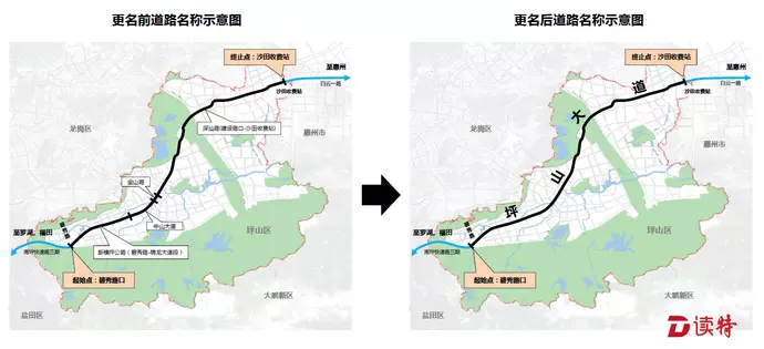 据介绍,更名后,坪山区将积极稳妥做好路名变更后续相关工作,妥善处置坪山大道沿线路牌、门牌和企业、居民相关证照的更换工作等。