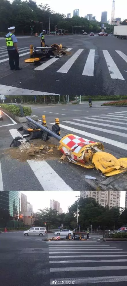 新闻提要 6月8日凌晨4时22分,深圳市福田区新洲路莲花路口的人行横道灯和沙桶等被撞,事故发生之后,肇事司机驾车逃逸。