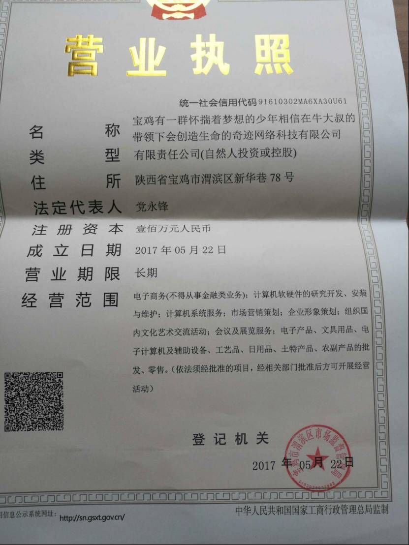 宝鸡有一群怀揣着梦想的少年相信在牛大叔的带领下会创造生命的奇迹网络科技有限公司。