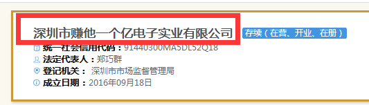 向国民公公王健林学习的,“深圳市赚他一个亿电子实业有限公司”……