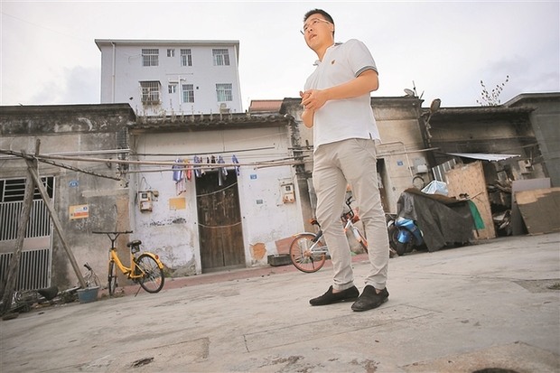 李蔚明站在祖宅前,回忆童年时的梧桐山村。