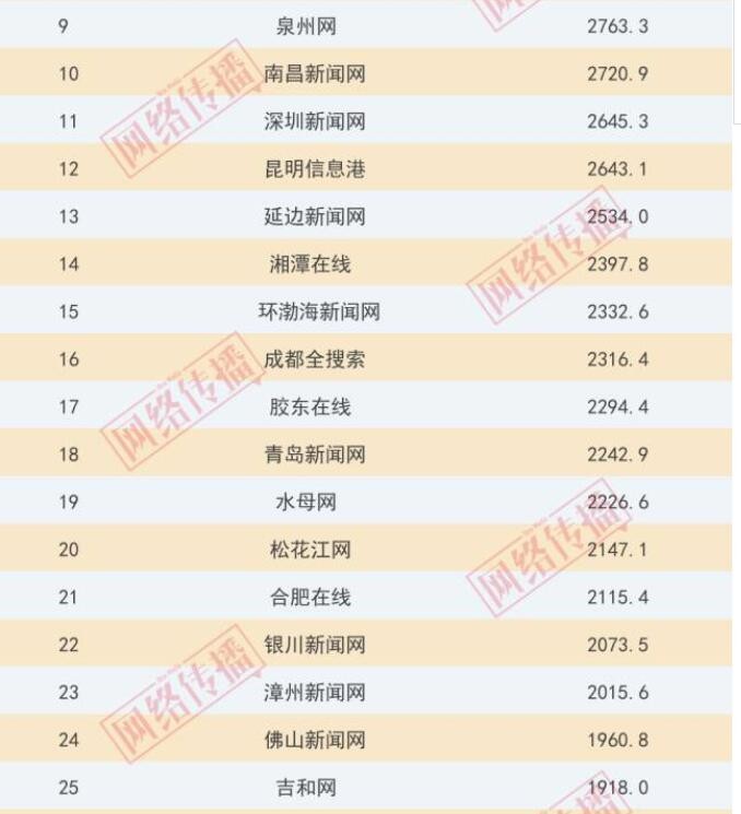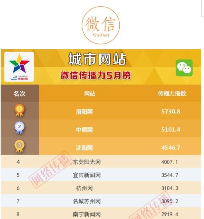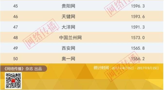 城市网站传播力2017年5月榜发布!统计时间:2017年4月16日至5月15日。