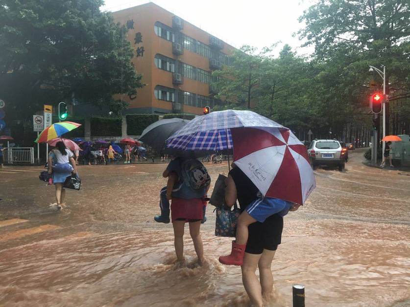 雨渐渐小了,虽然大水冲了车公庙,但却冲不散咱深圳人的心,应对台风“苗柏”,你给深圳打多少分?