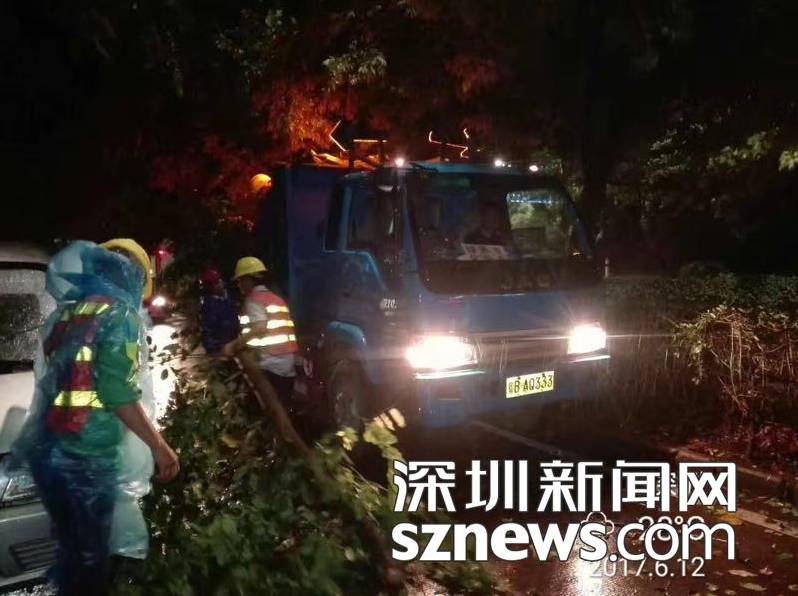 ▲南山区城管局专业队伍对可能受台风影响造成危害的树木进行处置,对大风刮落的树枝及时进行清理。