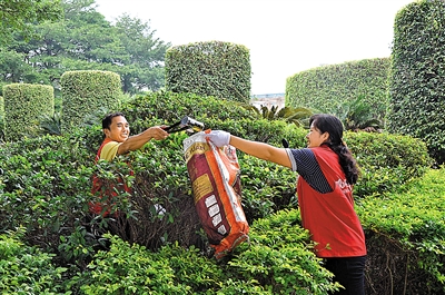 爱护环境 志愿者自发到世纪广场捡垃圾,为市民提供一个优美的环境。
