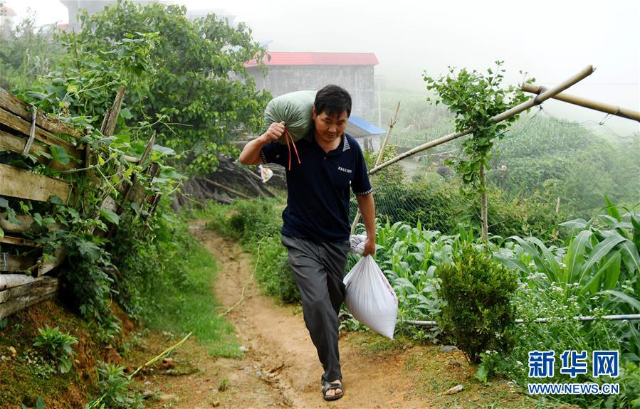 6月14日,广西河池市天峨县八腊瑶族乡五福村农民房文军赶赴村里的“空店”。“空店”是在贫困村和城市社区间架起的空中农贸市场,是广西壮族自治区科技厅、天峨县政府与一家农业科技有限公司合作探索的精准扶贫模式:整合农村零散优质农产品资源,在村级设立交易点收购,通过线上、线下销售给城市社区居民。