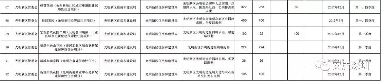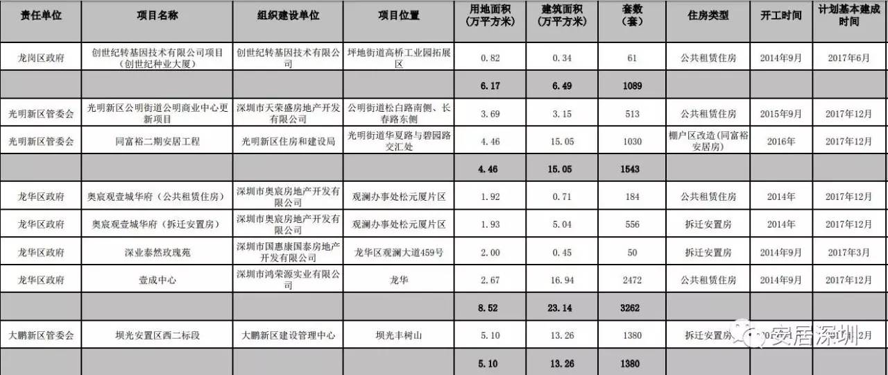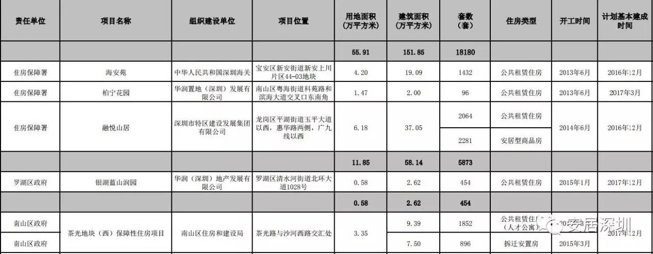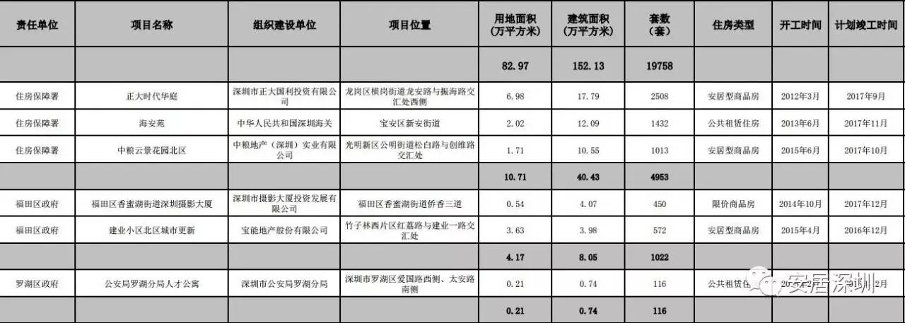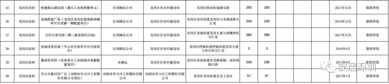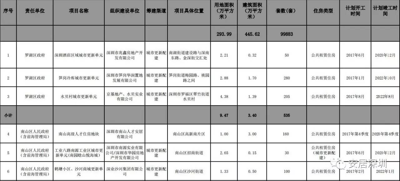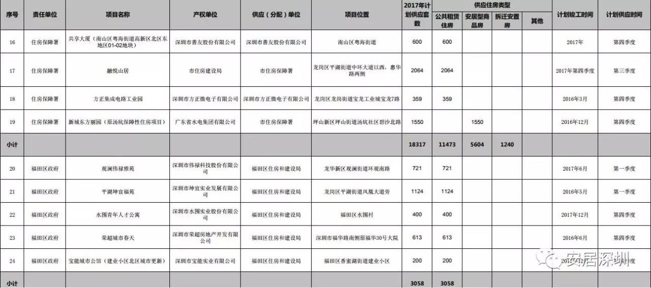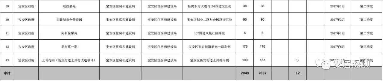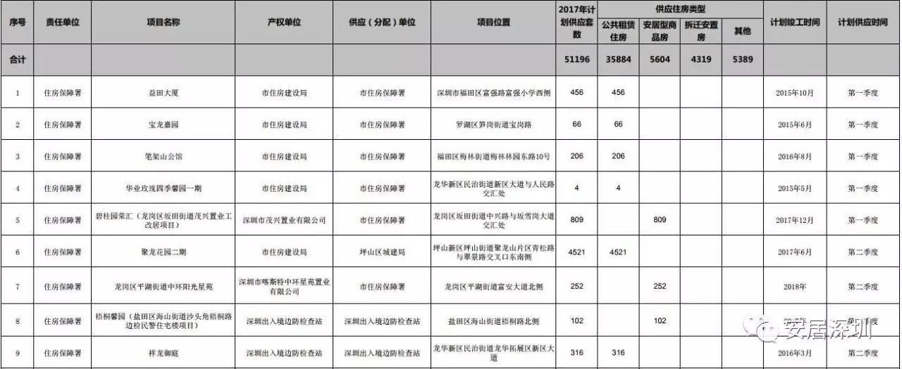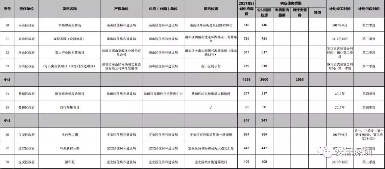 1、深圳市2017年安居工程计划开工、筹集项目表