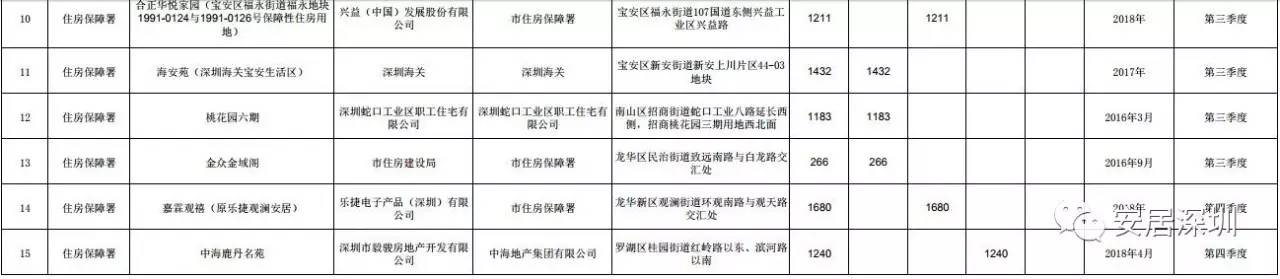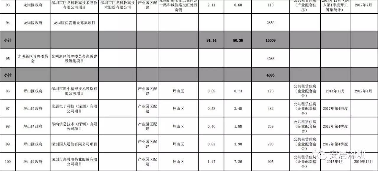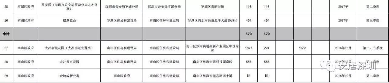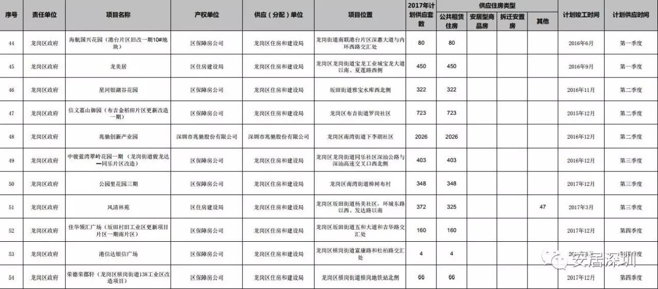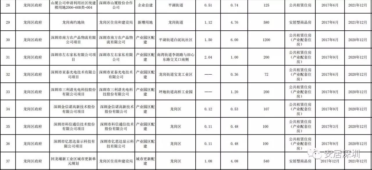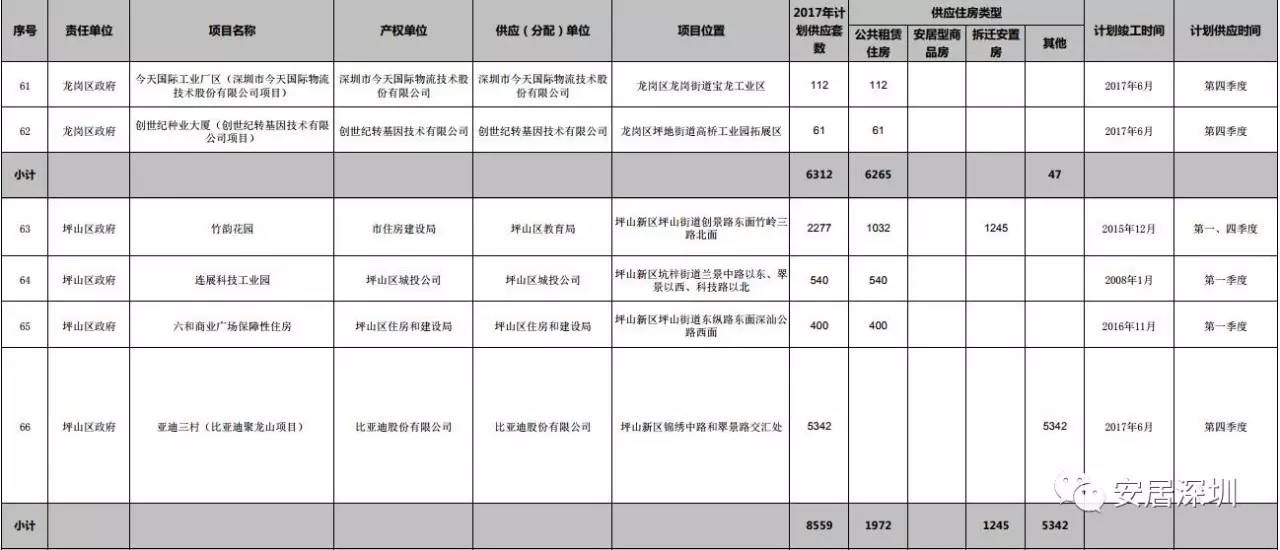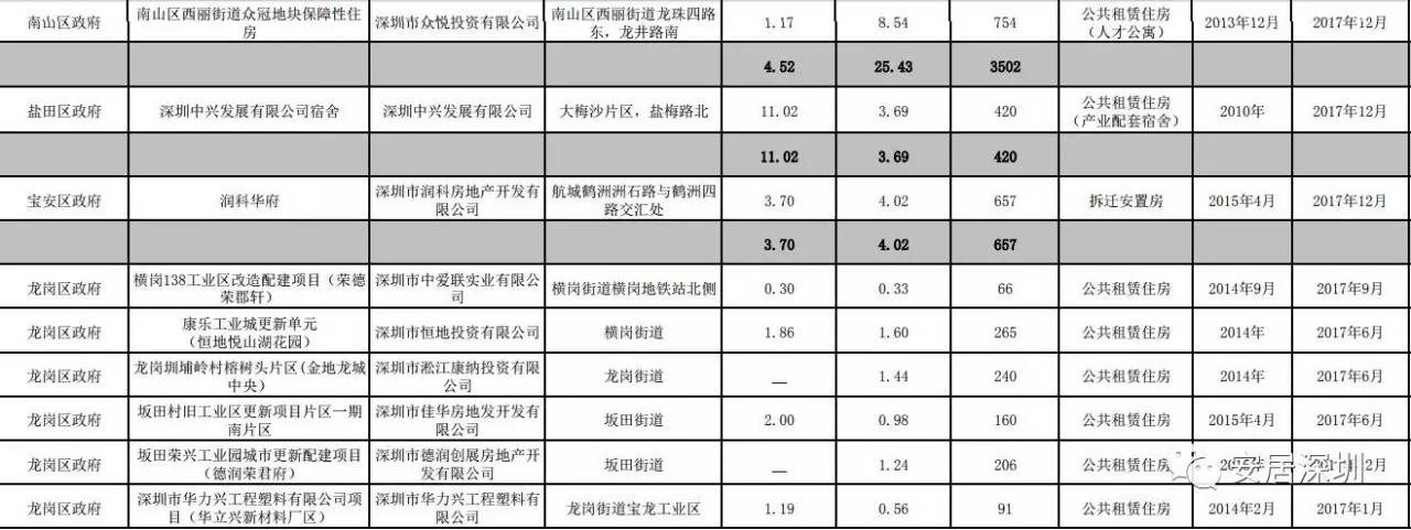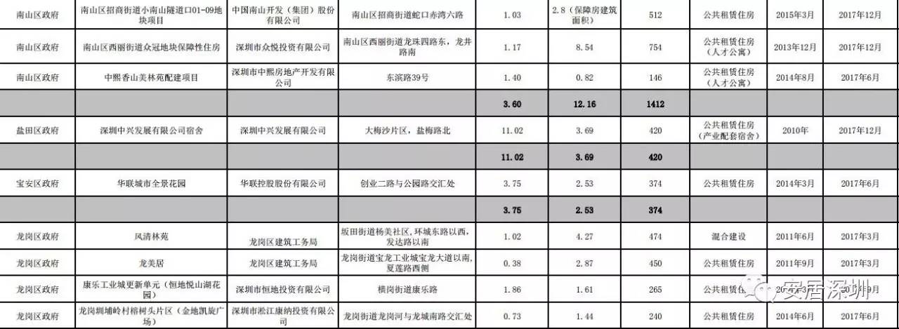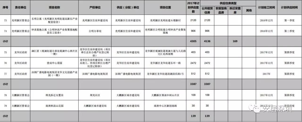 1、深圳市2017年安居工程计划开工、筹集项目表