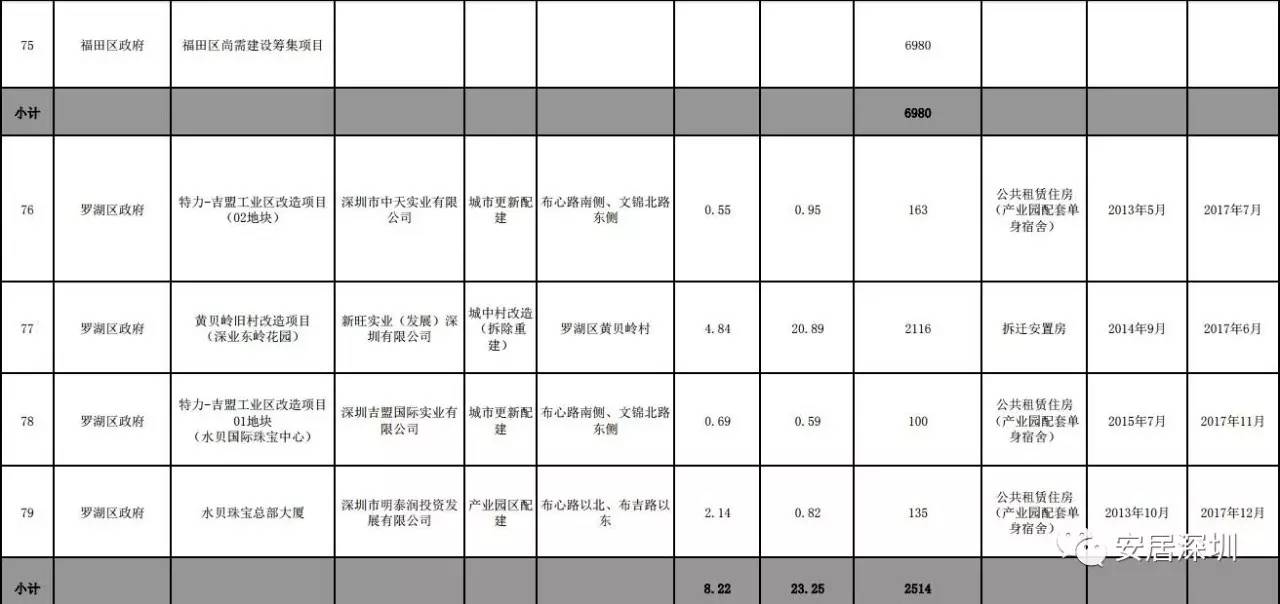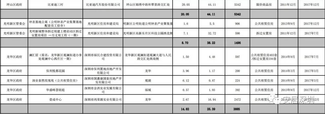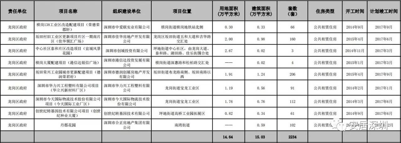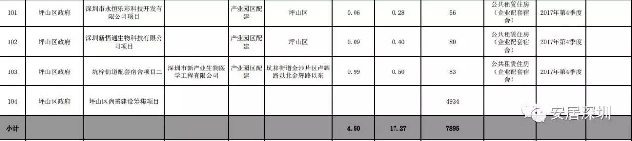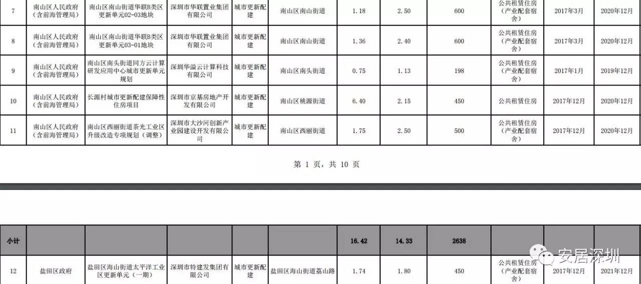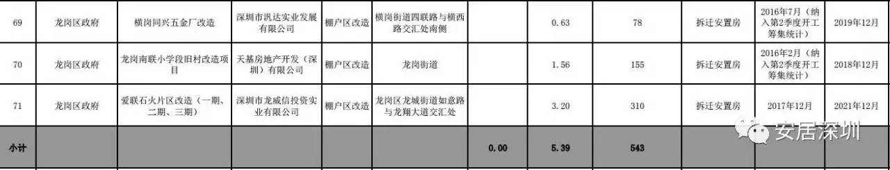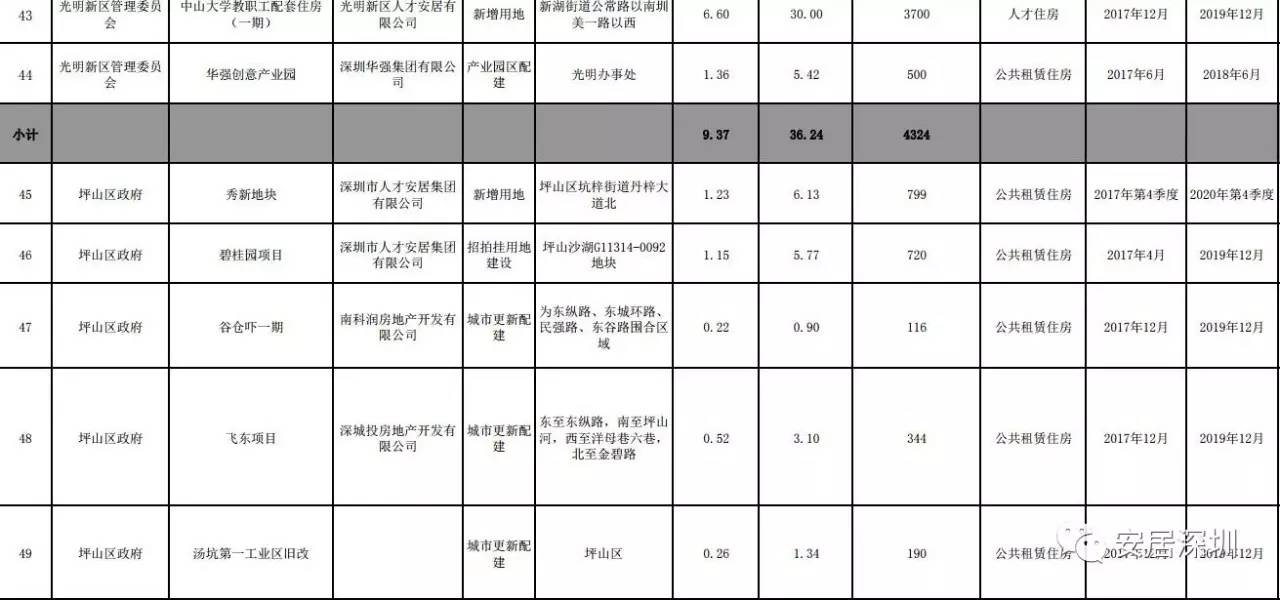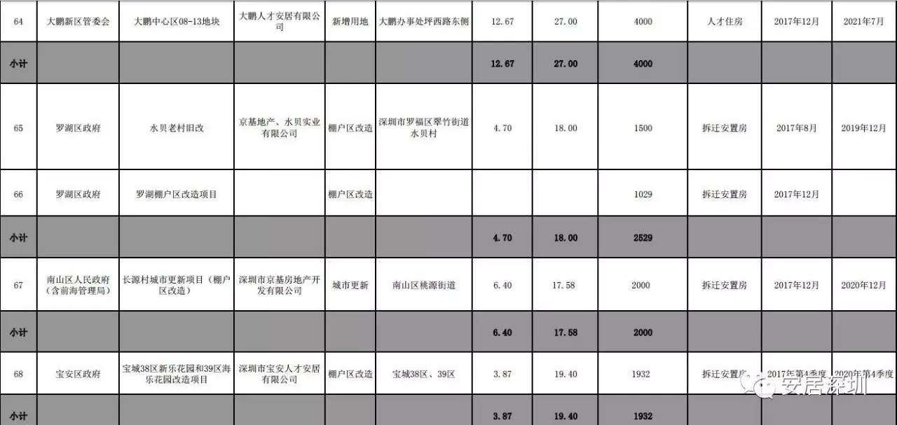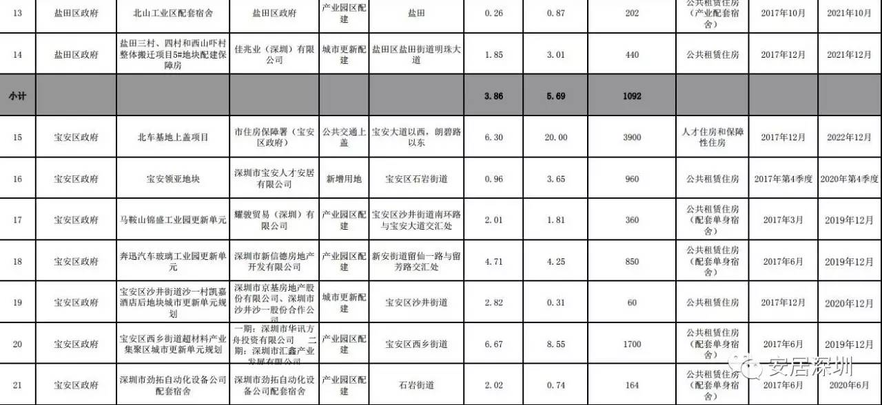 1、深圳市2017年安居工程计划开工、筹集项目表