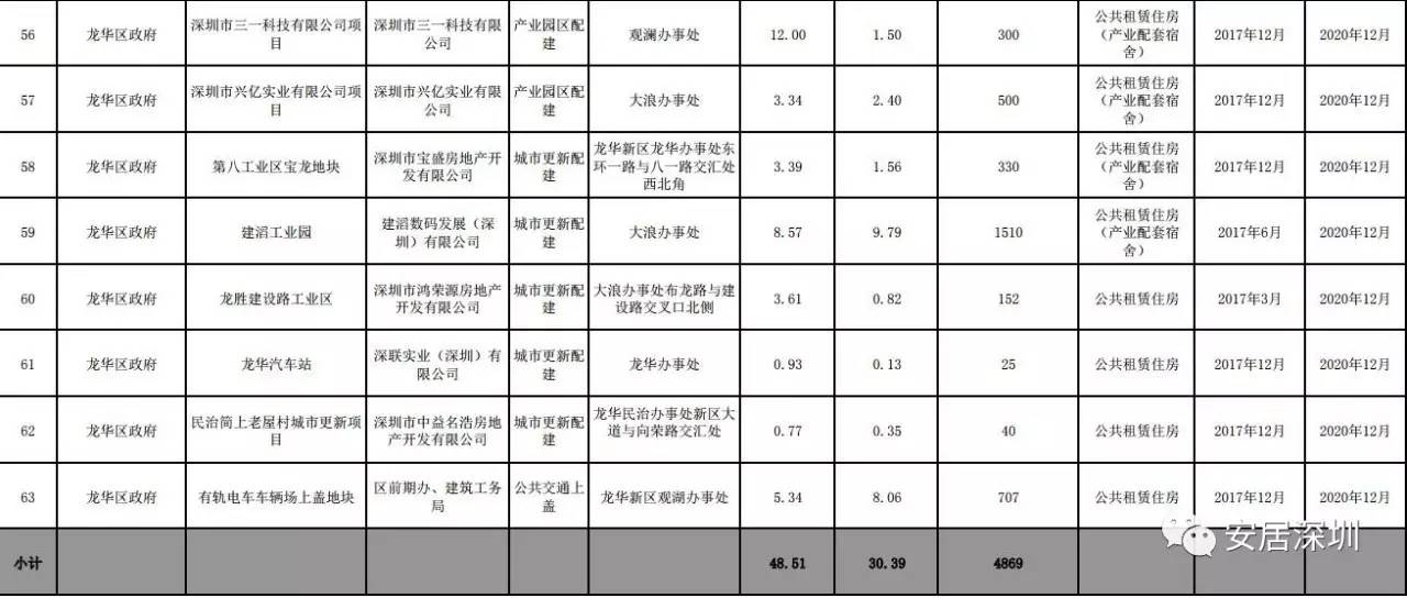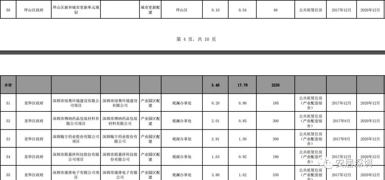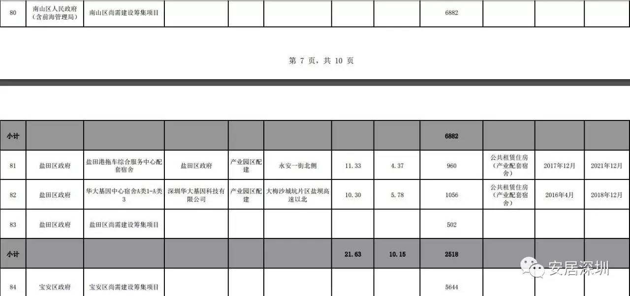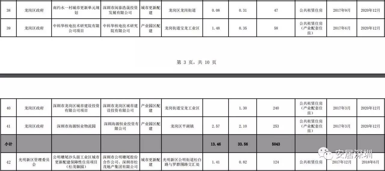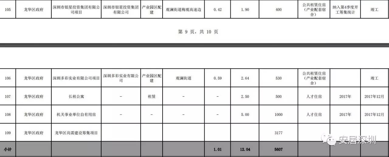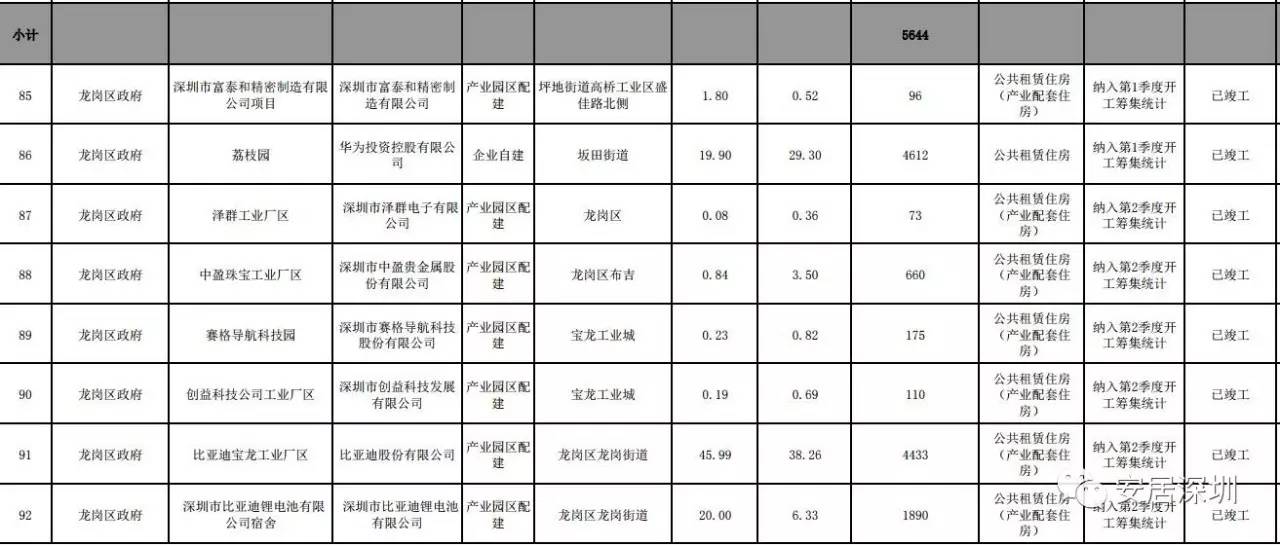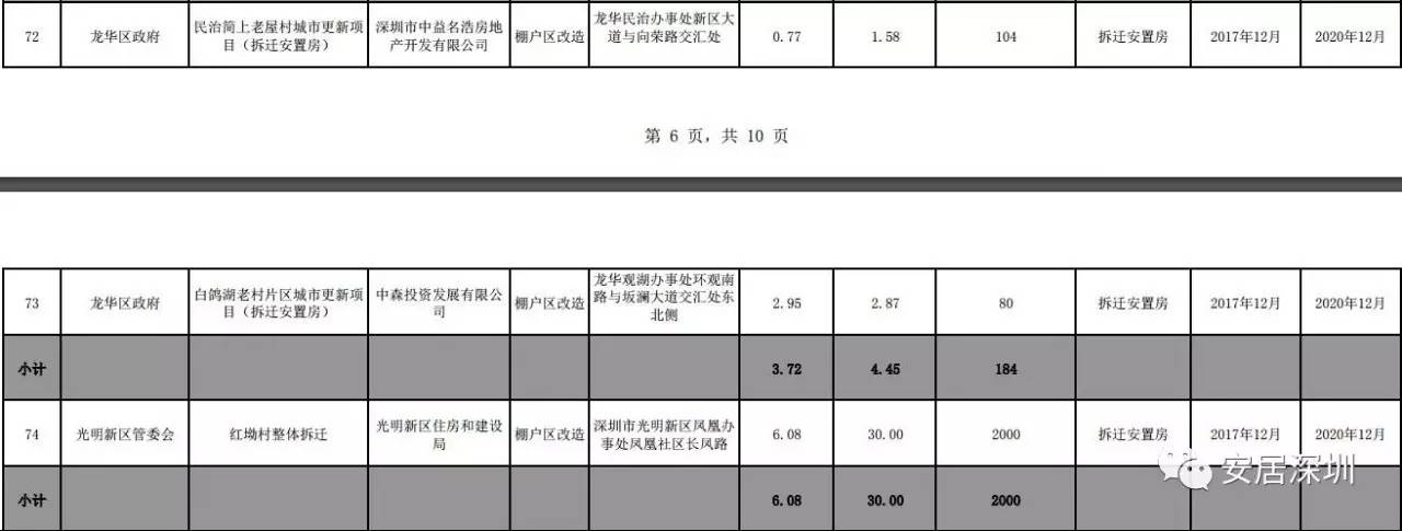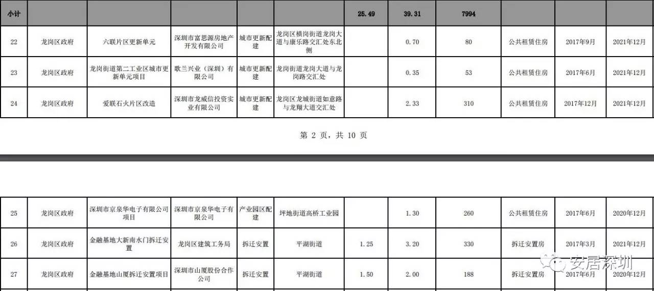 1、深圳市2017年安居工程计划开工、筹集项目表