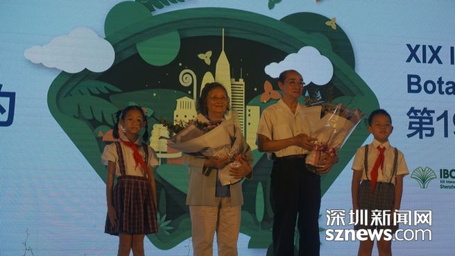 《深圳植物志》主编李沛琼、李秉滔接受小学生献花