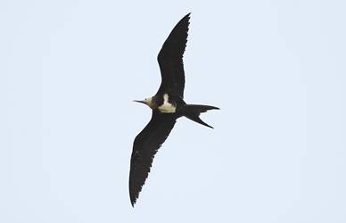 近日,深圳鸟友都扛着长枪短炮奔往深圳湾公园,因为在此发现了一只罕见鸟儿。6月15日,市民陈奕光途经深圳湾公园海韵桥附近时,发现天空中一只大鸟正在盘旋,大鸟的飞行姿态让他直觉这不是一般的“鹰”。经深圳观鸟协会资深鸟友证实,这是一只在深圳地区极为罕见的白斑军舰鸟,也是自深圳有观鸟记录以来,第二次观测到这种海鸟。