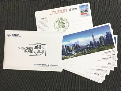 国际植物学组委会和中国邮政集团公司联合推出了《影像深圳》纪念邮资明信片。这套明信片选取的地标从深圳湾大桥到大梅沙海滨公园,从盐田港到世界之窗,用极具历史感的镜头语言记录了深圳这块神奇土地创造的辉煌,全面展示了深圳繁荣的经济、多元的文化、领先的科技、优美的生态和发达的交通,是深圳30多年来改革开放巨大成就的一组缩影,彰显出开放、包容、创新的独特城市魅力。