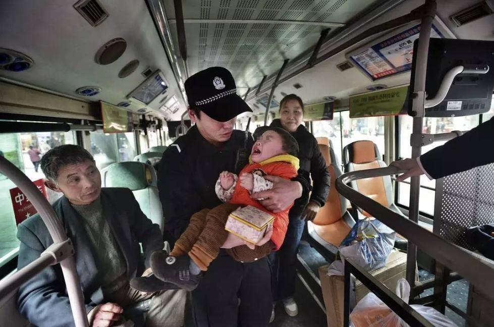 2013年12月12日,一位实习警员将一位走失的小男孩抱下公交车并带回派出所。后经多方联系,孩子的父母才赶到派出所将其接回。