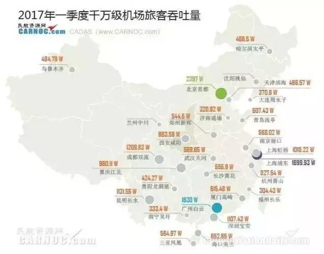 2016年粤港澳经济圈各大机场旅客吞吐量