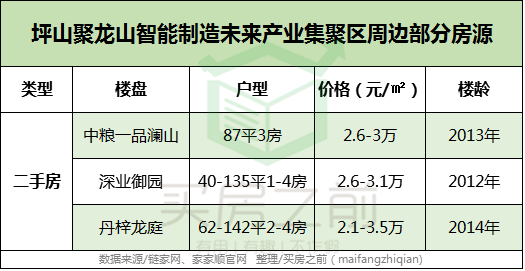 周边房源:聚龙山集聚区实际上属于坪山较偏的区域,因此房价也相对亲民,多在2-3万/平,是深圳少有的2字头片区。周边在售的房源也比较少,目前暂无新房,只有几个次新房。