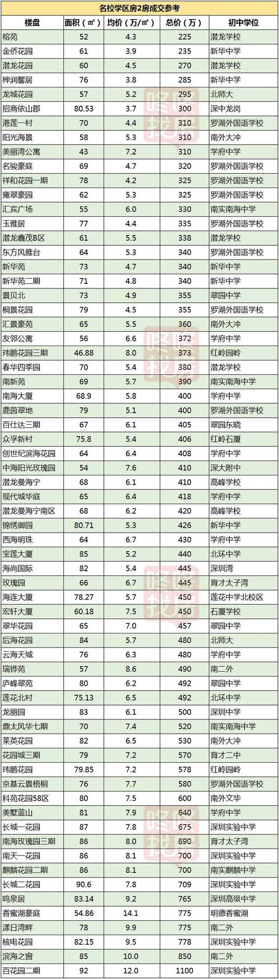 以上统计到的学校共计35所,部分学校成名已久,教学成绩深受置业者信任,同时此次统计也包含了几所近年新开办的高起点新校和归入名校集团的新校区,例如 明德实验学校、深圳湾学校、育才太子湾学校等,虽然尚未出成绩,但是已经引起了不少置业者的关注。