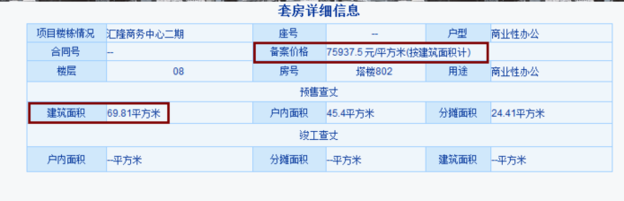 汇隆商务中心2期本次推出的是右侧43层塔楼,共654套。均为商业性办公产品。2期整体备案均价约6.4万/m2,备案总价区间在10-1614万之间。