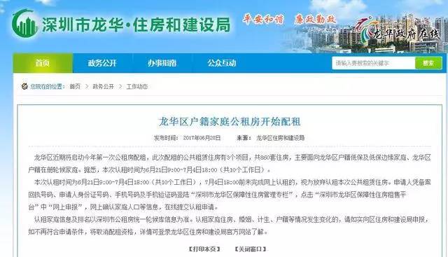 本次认租时间为6月21日9:00-7月4日18:00(共10个工作日),7月4日18:00前未完成网上认租的,视为放弃认租本次公共租赁住房。申请人凭备案回执号码、申请人身份证号码、手机号码及手机验证码登陆“深圳市龙华区保障性住房管理专栏”,点击“深圳市龙华区保障性住房租售平台”中“网上申报”,网上确认家庭人口等信息,在线提交认租申请。