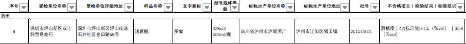 坪山区双丰好贸易商行的诸葛酿,酒精度不合格。