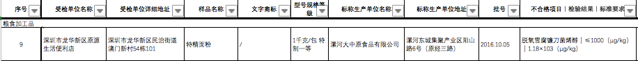龙华区原源生活便利店的特精面粉,脱氧雪腐镰刀菌烯醇不合格。