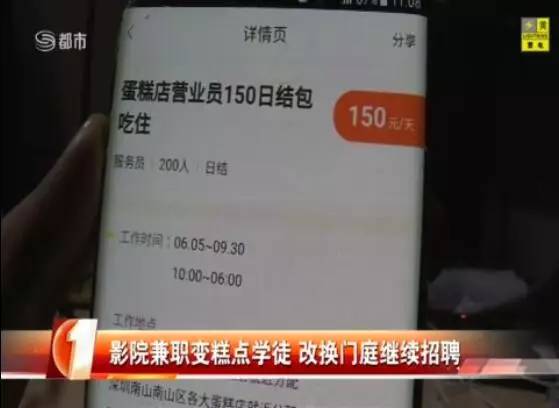 有求职者在斗米APP上发现了端倪:上个月的电影院检票员兼职招聘不见了,又冒出个蛋糕店学徒的招聘,招聘者依然是兴脉信息咨询有限公司,只是面试地点改到了宝安区。
