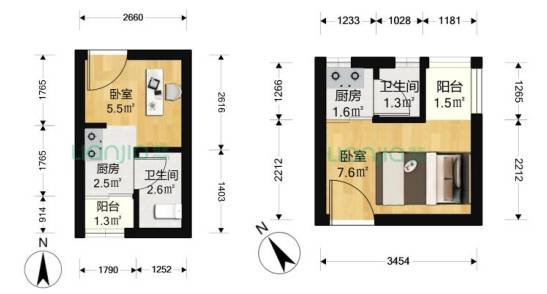 小区建筑年代比较老,但优势在于翻新后内部装修精致,属于麻雀虽小五脏俱全类型。户型都比较方正,没有什么浪费面积。其中15平只有房间跟卫生间,19平户型就多了一个小厨房。