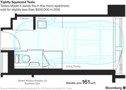 据彭博近日报道,一辆特斯拉Model X在香港的起售价约为15万美元(约101万人民币),而香港恒基地产推出的同样大小(约15平米)的迷你公寓售价则要价近50万美元(约340万人民币),单价约22.7万/元(人民币)。
