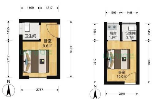 小区建筑年代比较老,但优势在于翻新后内部装修精致,属于麻雀虽小五脏俱全类型。户型都比较方正,没有什么浪费面积。其中15平只有房间跟卫生间,19平户型就多了一个小厨房。