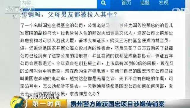 2016年4月份,贵州黔东南州警方在网上巡查中发现,很多人发帖对“国宏金桥基金”、“国宏众筹”等融资项目提出质疑。称这些项目许诺几十倍的高额回报,夸大公司业绩。多人已投入不少钱,并深陷其中。这个线索引起了警方的注意。