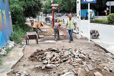 今年5月,该项目正式完成通过招投标,6月份开始进场施工。目前该项目进展顺利,绿化迁移完成85%,探沟开挖完成100%,路灯迁移完成100%,人行道施工完成45%,机动车道施工完成15%,总体形象进度20%,完成投资约88万元。整个工程计划12月底前完成施工。(龙华新闻记者 宋彪 通讯员 易飞扬/文 记者 陈建华/图)