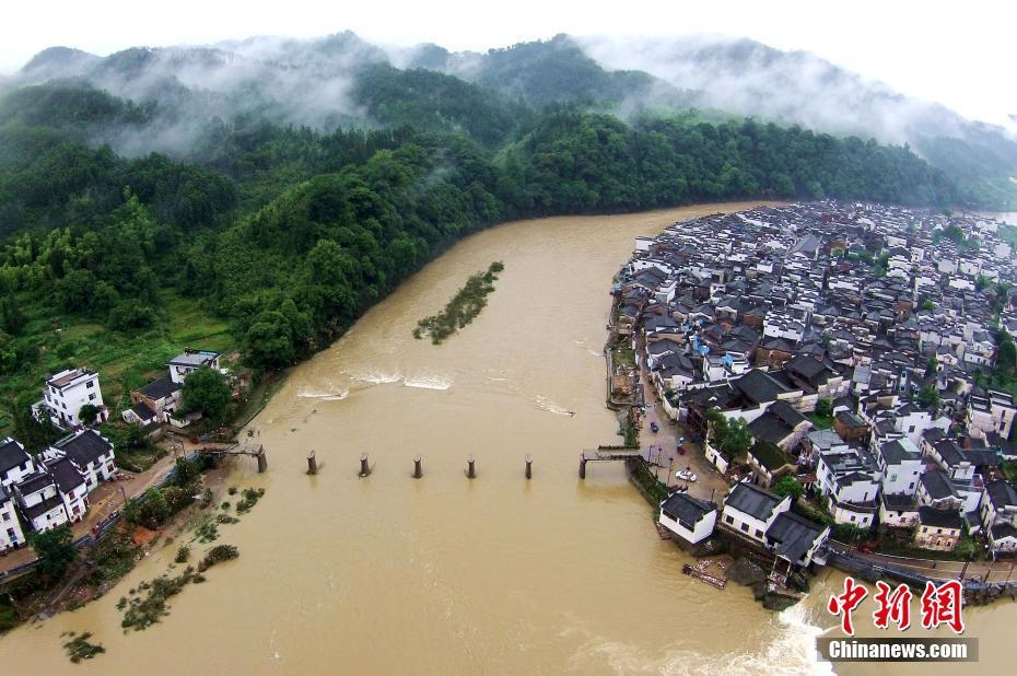 6月25日,中国减灾委、民政部对江西省启动国家救灾四级应急响应。6月21日至今,江西受强降雨袭击,多地受淹严重。据江西省民政厅报告,截至6月25日8时统计,暴雨洪涝灾害造成江西南昌、景德镇、萍乡、九江等8市34个县(市、区)116.3万人受灾,紧急转移安置20.4万人,直接经济损失14.7亿元人民币。6月25日,江西省婺源县江湾镇汪口村一桥梁被冲毁。程新德 摄