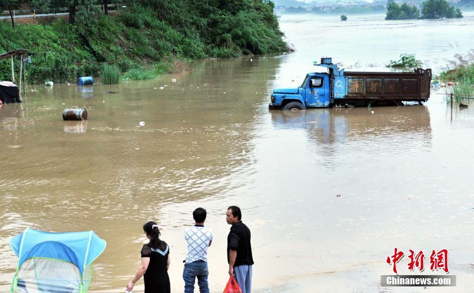 6月25日,中国减灾委、民政部对江西省启动国家救灾四级应急响应。6月21日至今,江西受强降雨袭击,多地受淹严重。据江西省民政厅报告,截至6月25日8时统计,暴雨洪涝灾害造成江西南昌、景德镇、萍乡、九江等8市34个县(市、区)116.3万人受灾,紧急转移安置20.4万人,直接经济损失14.7亿元人民币。6月24日,江西省德兴市泗洲镇中洲村河岸,一辆没有来得及离开的农用车被淹。卓忠伟 摄
