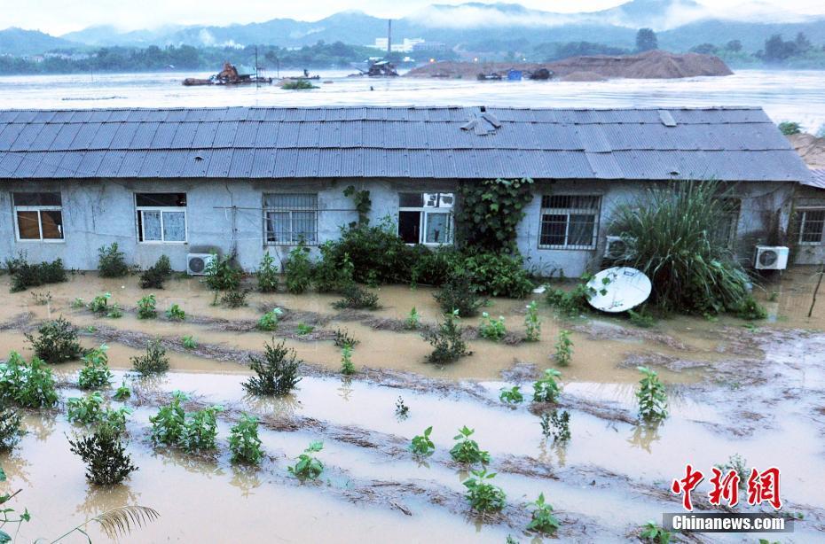 6月25日,中国减灾委、民政部对江西省启动国家救灾四级应急响应。6月21日至今,江西受强降雨袭击,多地受淹严重。据江西省民政厅报告,截至6月25日8时统计,暴雨洪涝灾害造成江西南昌、景德镇、萍乡、九江等8市34个县(市、区)116.3万人受灾,紧急转移安置20.4万人,直接经济损失14.7亿元人民币。6月24日,江西省德兴市泗洲镇中洲村一栋民房被淹。卓忠伟 摄
