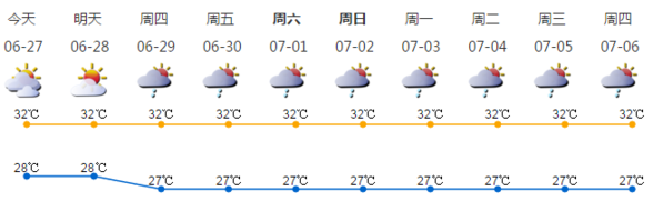 我市多云间晴天,局部有短时阵雨;气温28-32℃;西南风2-3级;相对湿度65%-95%