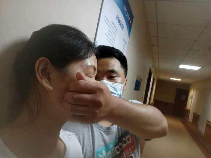 6月23日,赵弘逸进行免疫治疗的第一天,发烧不断。医生告诉赵海栋、徐金凤夫妇,这个发烧是正常的,是用好的细胞去攻克坏的细胞,孩子可能会烧到浑身抽搐甚至昏迷,整个过程就如同去鬼门关走一遭,但这些都是必经之路。图为孩子在受罪,夫妻俩不能代替,在医院楼道里暗自垂泪。